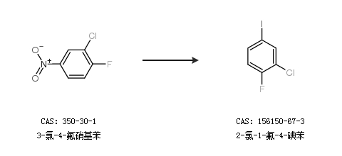 1.通过3-氯-4-氟硝基苯合成2-氯-1-氟-4-碘苯