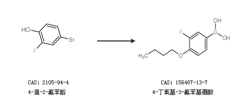 2.通过4-溴-2-氟苯酚合成4-丁氧基-3-氟苯基硼酸