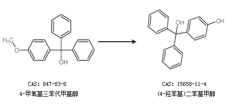 1.通过4-甲氧基三苯代甲基醇合成(4-羟苯基)二苯基甲醇