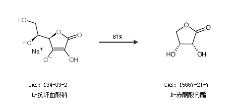 1.通过L-抗坏血酸钠合成D-赤酮酸内酯,收率约87%;