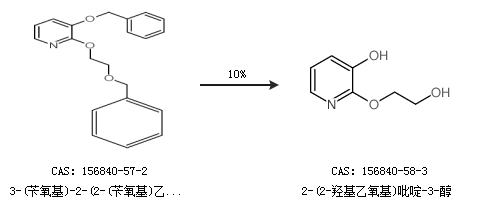 1.通过3-(苄氧基)-2-(2-(苄氧基)乙氧基)吡啶合成2-(2-羟基乙氧基)吡啶-3-醇,收率约10%;