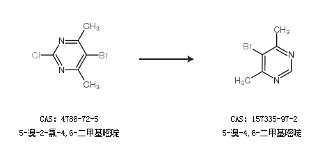 2.通过5-溴-2-氯-4,6-二甲基嘧啶合成5-溴-4,6-二甲基嘧啶