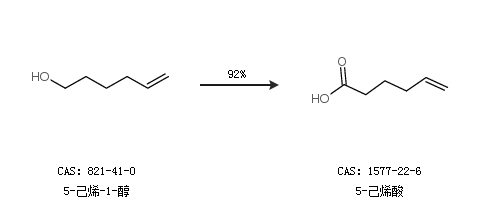 1.通过5-己烯-1-醇合成5-己烯酸,收率约92%;