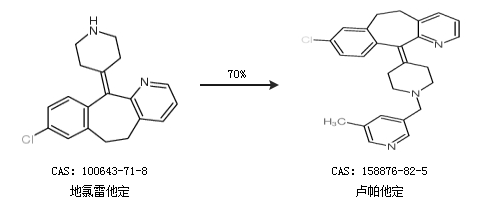 1.通过地氯雷他定合成卢帕他定,收率约70%;