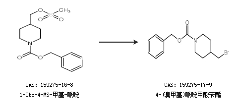 2.通过1-Cbz-4-MS-甲基-哌啶合成4-(溴甲基)哌啶甲酸苄酯
