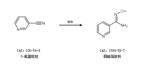 1.通过3-氰基吡啶合成烟碱偕胺肟,收率约98%;