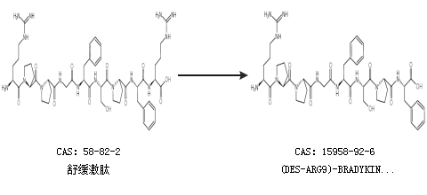 英文别名 1-8-Bradykinin;9-De-Arg-bradykinin;des-arginine9-bradykinin;9-Des-Arg-bk;des-Arg9-BK;bradykinin fragment 1-8;des-Arg9-bradykinin;RPPGFSPF;DABK;