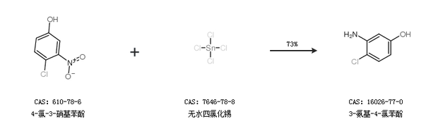 1.通过4-氯-3-硝基苯酚和无水四氯化锡合成3-氨基-4-氯苯酚,收率约73%;