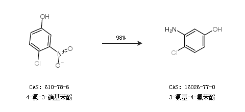 2.通过4-氯-3-硝基苯酚合成3-氨基-4-氯苯酚,收率约98%;