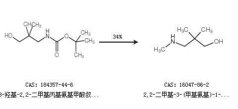 1.通过3-羟基-2,2-二甲基丙基氨基甲酸叔丁酯合成2,2-二甲基-3-(甲基氨基)-1-丙醇,收率约34%;
