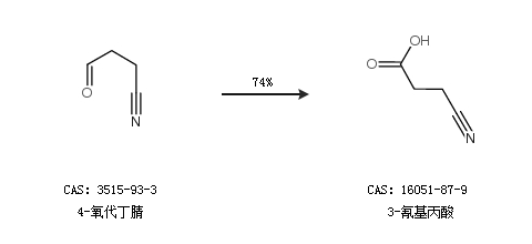 1.通过4-氧代丁腈合成3-氰基丙酸,收率约74%;