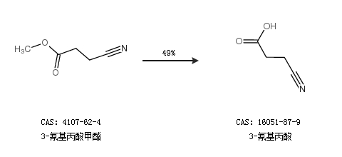 2.通过3-氰基丙酸甲酯合成3-氰基丙酸,收率约49%;
