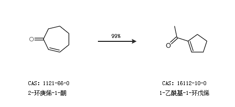 2.通过2-环庚烯-1-酮合成1-乙酰基-1-环戊烯,收率约99%;
