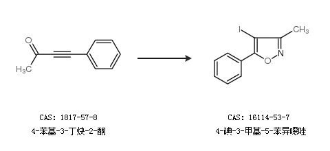 2.通过4-苯基-3-丁炔-2-酮合成4-碘-3-甲基-5-苯异噁唑