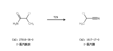 1.通过2-氯丙酰胺合成2-氯丙腈,收率约72%;