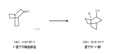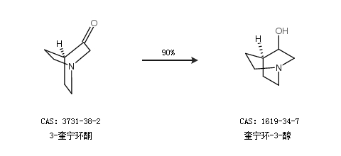 1.通过3-奎宁环酮合成奎宁环-3-醇,收率约90%;