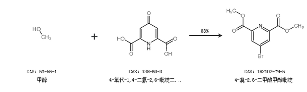 2.通过甲醇和4-氧代-1,4-二氢-2,6-吡啶二甲酸合成4-溴-2.6-二甲酸甲酯吡啶,收率约83%;