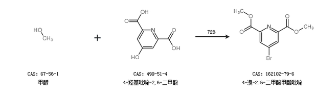 1.通过甲醇和4-羟基吡啶-2,6-二甲酸合成4-溴-2.6-二甲酸甲酯吡啶,收率约72%;