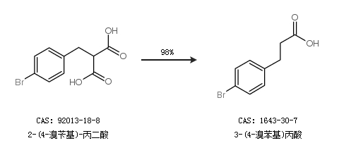 1.通过2-(4-溴苄基)-丙二酸合成3-(4-溴苯基)丙酸,收率约98%;