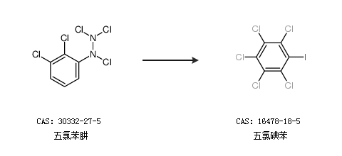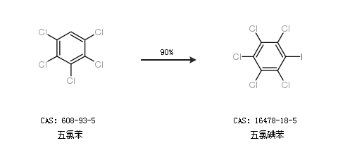 1.通过五氯苯合成五氯碘苯,收率约90%;