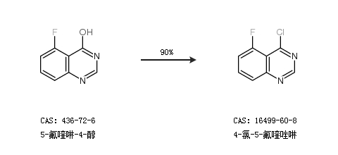 2.通过5-氟喹啉-4-醇合成4-氯-5-氟喹唑啉,收率约90%;