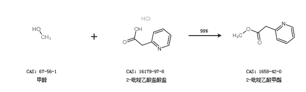 1.通过甲醇和2-吡啶乙酸盐酸盐合成2-吡啶乙酸甲酯,收率约99%;