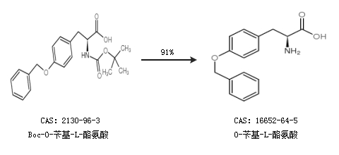 2.通过Boc-O-苄基-L-酪氨酸合成O-苄基-L-酪氨酸,收率约91%;