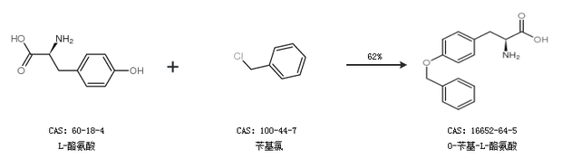 1.通过L-酪氨酸和苄基氯合成O-苄基-L-酪氨酸,收率约62%;