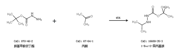 2.通过肼基甲酸叔丁酯和丙酮合成1-Boc-2-异丙基肼,收率约45%;