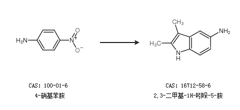 1.通过2,3-二甲基-5-硝基吲哚合成2,3-二甲基-1H-吲哚-5-胺