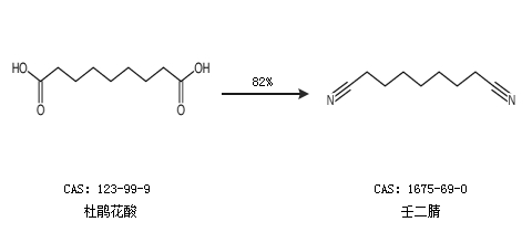 1.通过杜鹃花酸合成壬二腈,收率约82%;