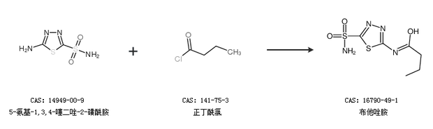 2.通过5-氨基-1,3,4-噻二唑-2-磺酰胺和正丁酰氯合成布他唑胺