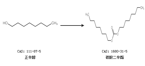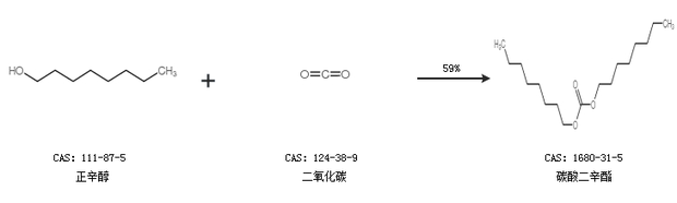 2.通过正辛醇和二氧化碳合成碳酸二辛酯,收率约59%;