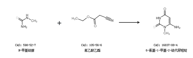 1.通过N-甲基硫脲和氰乙酸乙酯合成6-氨基-1-甲基-2-硫代尿嘧啶