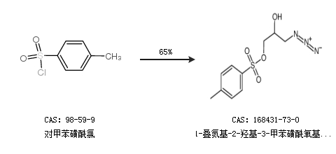 1.通过对甲苯磺酰氯合成1-叠氮基-2-羟基-3-甲苯磺酰氧基丙烷,收率约49%;