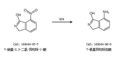 1.通过7-硝基-2,3-二氢-异吲哚-1-酮合成7-氨基异吲哚烷酮,收率约92%;