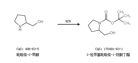 1.通过吡咯烷-2-甲醇合成2-羟甲基吡咯烷-1-羧酸丁酯,收率约92%;