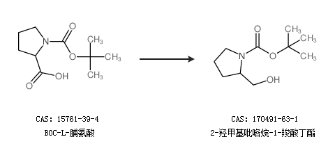 2.通过BOC-L-脯氨酸合成2-羟甲基吡咯烷-1-羧酸丁酯