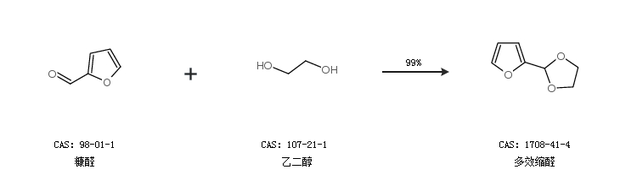 1.通过糠醛和乙二醇合成多效缩醛,收率约99%;