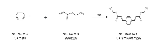 1.通过1,4-二碘苯和丙烯酸乙酯合成1,4-苯二丙烯酸二乙酯,收率约93%;