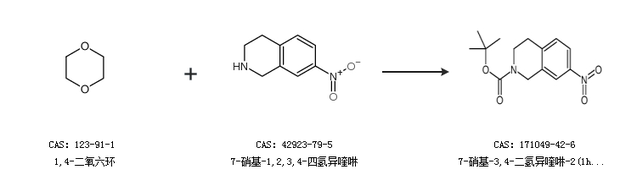 2.通过1,4-二氧六环和7-硝基-1,2,3,4-四氢异喹啉合成7-硝基-3,4-二氢异喹啉-2(1h)-羧酸叔丁酯