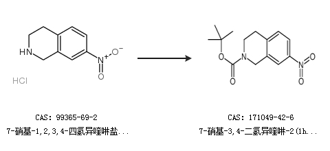 1.通过7-硝基-1,2,3,4-四氢异喹啉盐酸盐合成7-硝基-3,4-二氢异喹啉-2(1h)-羧酸叔丁酯