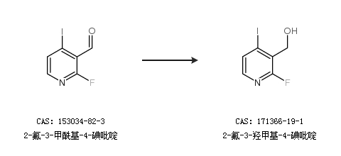 1.通过2-氟-3-甲酰基-4-碘吡啶合成2-氟-3-羟甲基-4-碘吡啶