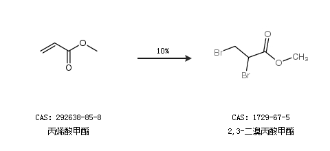1.通过丙烯酸甲酯合成2,3-二溴丙酸甲酯,收率约10%;