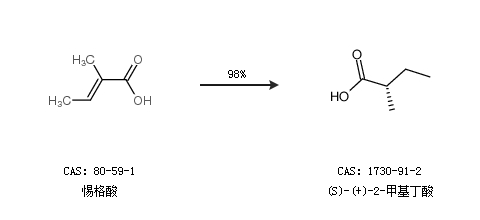 1.通过惕格酸合成(S)-(+)-2-甲基丁酸,收率约98%;