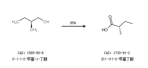 2.通过S-(-)-2-甲基-1-丁醇合成(S)-(+)-2-甲基丁酸,收率约85%;