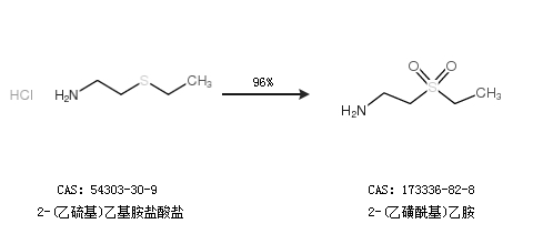 1.通过2-(乙硫基)乙基胺盐酸盐合成2-(乙磺酰基)乙胺,收率约96%;