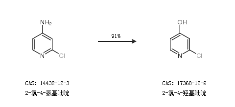 1.通过2-氯-4-氨基吡啶合成2-氯-4-羟基吡啶,收率约91%;