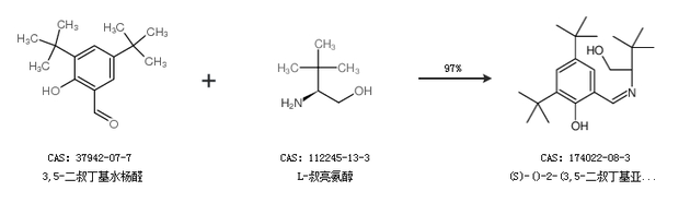 1.通过3,5-二叔丁基水杨醛和L-叔亮氨醇合成(S)-()-2-(3,5-二叔丁基亚水杨基氨基)-3,3-二甲基-1-丁醇,收率约97%;