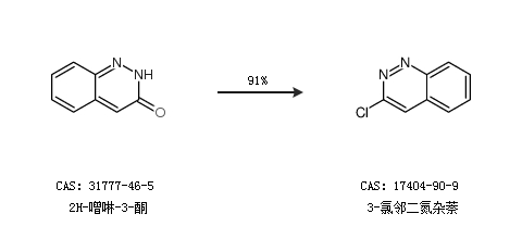 1.通过2H-噌啉-3-酮合成3-氯邻二氮杂萘,收率约91%;